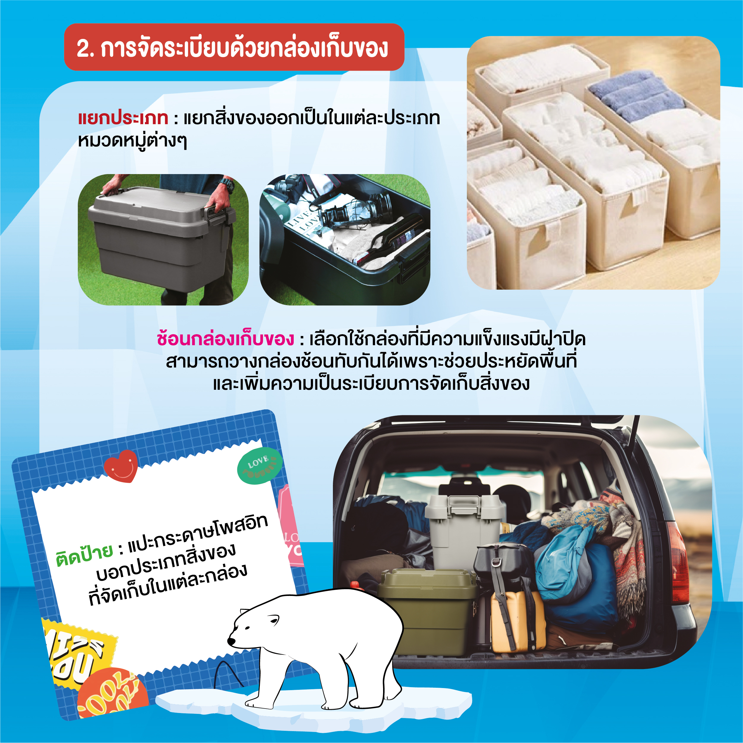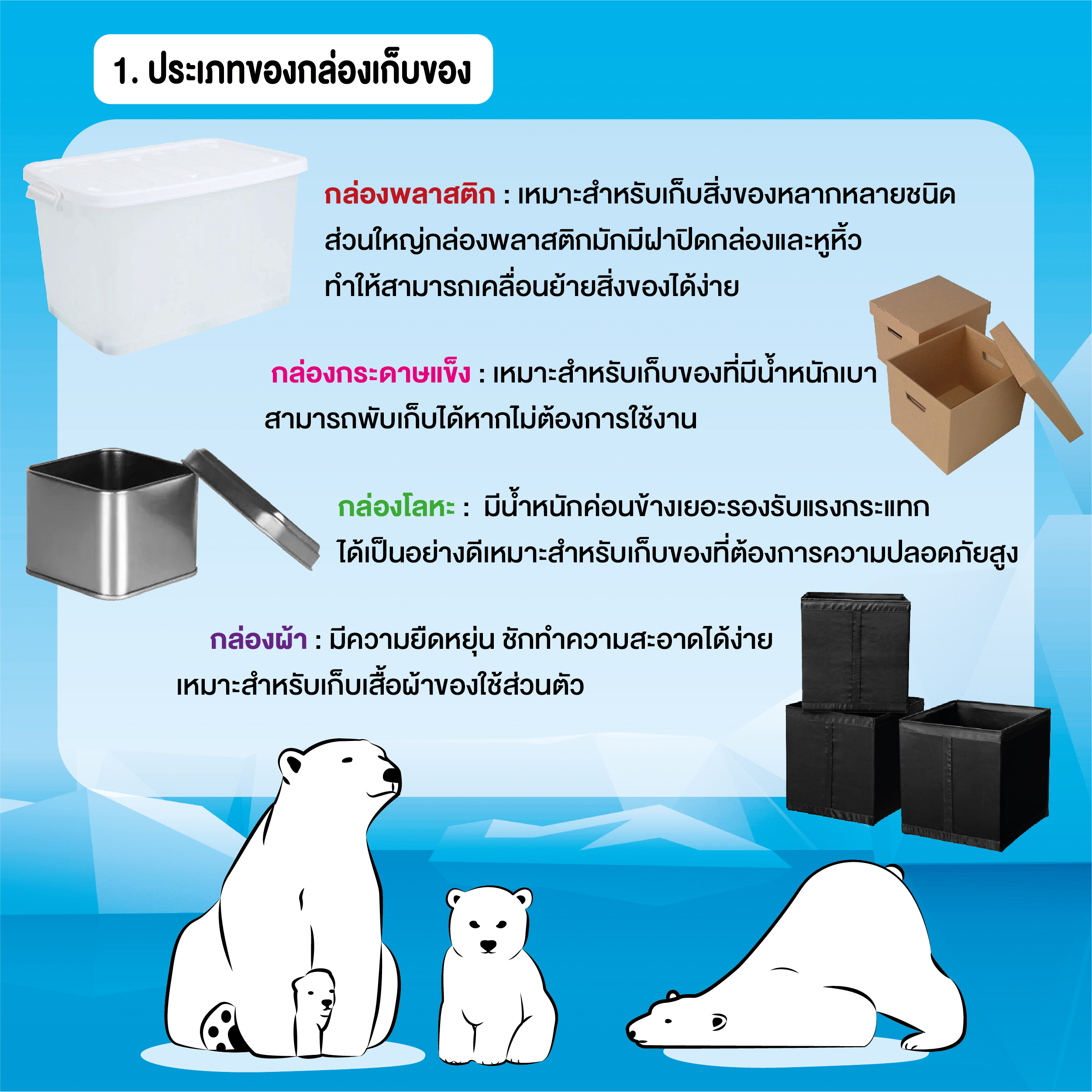 ทำความสะอาด : หมั่นทำความสะอาดกล่องเก็บของเพื่อป้องกันฝุ่นและสิ่งสกปรก